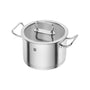 Dishwasher-safe and durable stainless steel. But that's just one of the many benefits the cookware will delight you with. The heat-stripped wide handles (and grips) are large enough for safe handling. Plus, they stay cool for longer. You'll probably also appreciate the handy pot rims for drip-free pouring, an internal measuring scale and energy-saving, perfectly fitting glass lids. Zwilling Pro cookware is suitable for all heat sources, including induction, and can even be used for baking in the oven up to 200 °C.