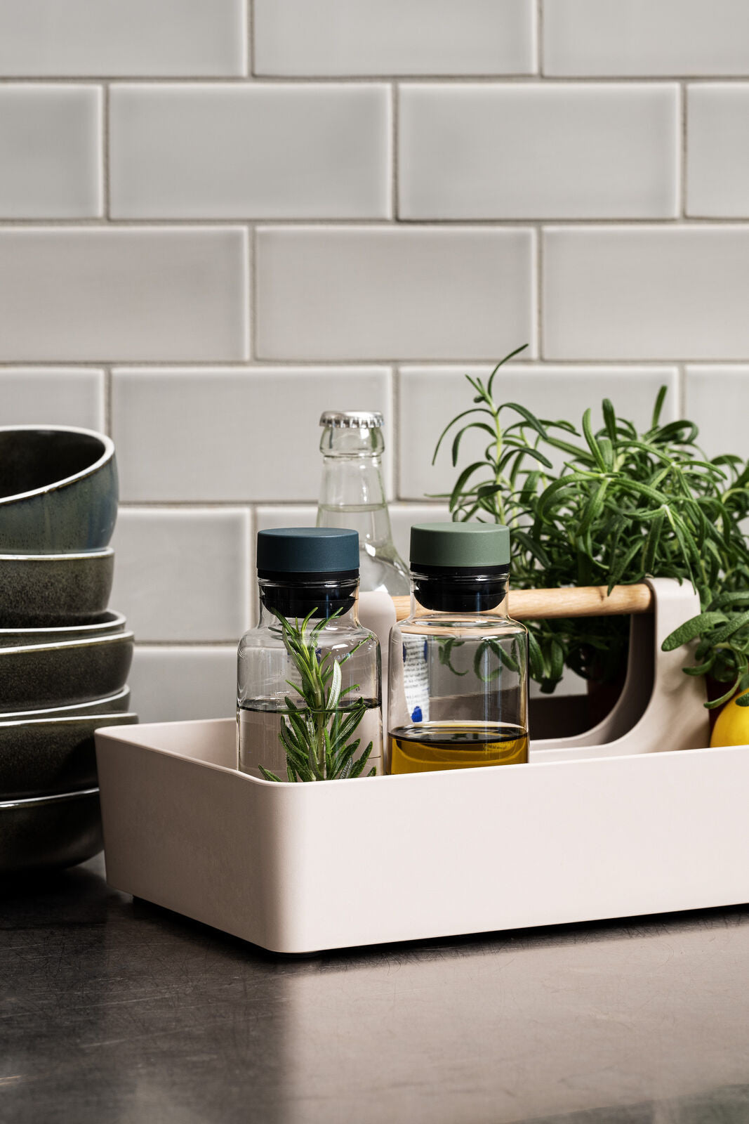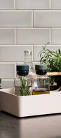CrushGrind je zárukou dobrého vkusu! Tato elegantní dóza na olej a ocet je součástí série Billund v zábavném a hravém designu. Barva skla odráží světlo a mění se v závislosti na obsahu. Hodí se ke každému stolu nebo kuchyni a je ideální pro váš oblíbený olej nebo ocet. Dóza je vyrobena z borosilikátového skla se silikonovou výlevkou. Silikonová výlevka je důmyslně navržena tak, aby bylo možné snadno kontrolovat nalévání a zabránit nechtěnému kapání. Díky jejímu tvaru stékají tekutiny po nalití zpět dovnitř láhve. Víčko je vyrobeno z biokompozitního materiálu z celulózových vláken na bázi dřeva z certifikovaných udržitelně obhospodařovaných lesů. Tento materiál dodává výrobkům hřejivý, přírodní a zemitý vzhled. Kromě toho má materiál nízkou uhlíkovou stopu a na rozdíl od biomateriálů na bázi plodin tento biokompozit nezasahuje do řetězce výroby potravin.