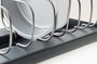Vyřešte problém s pověstně nepřehlednými kuchyňskými zásuvkami obsahující formy na pečení. Praktický organizér na plechy a formy na pečení vám usnadní jejich ukládání. Stabilní konstrukce s osmi drátěnými přepážkami z nerezové oceli, které lze nastavit tak, aby vyhovovaly různým velikostem pečicích plechů. Uspořádejte přehledně plechy na pečení, formy na dorty a koláče nebo zapékací mísy - mějte vše připravené k okamžitému použití.