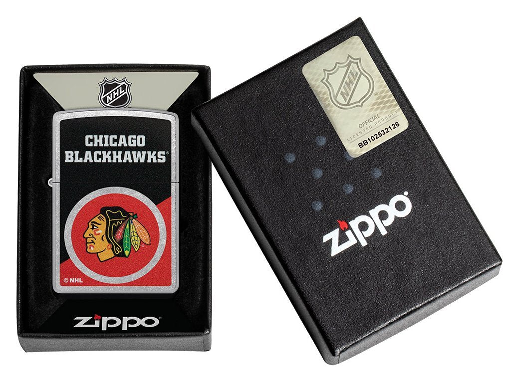 Zapalovač Zippo 25672 Chicago Blackhawks s povrchem Street Chrome.