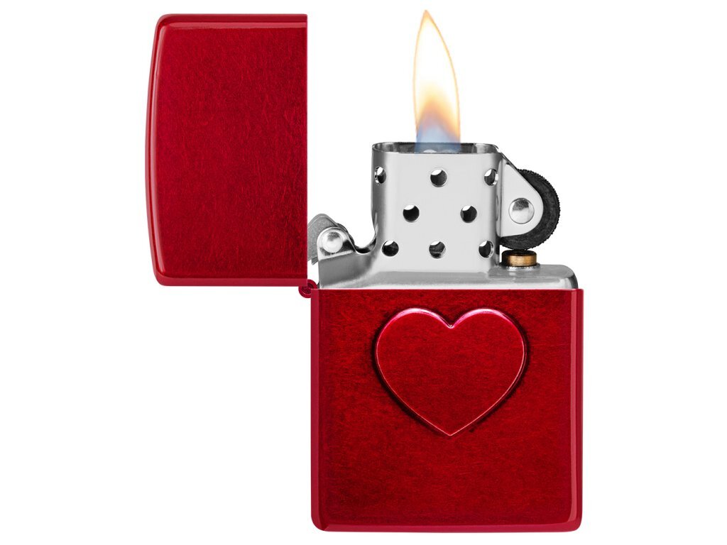 Zapalovač Zippo 66075 Stamped Heart Design s povrchem Candy Apple Red.