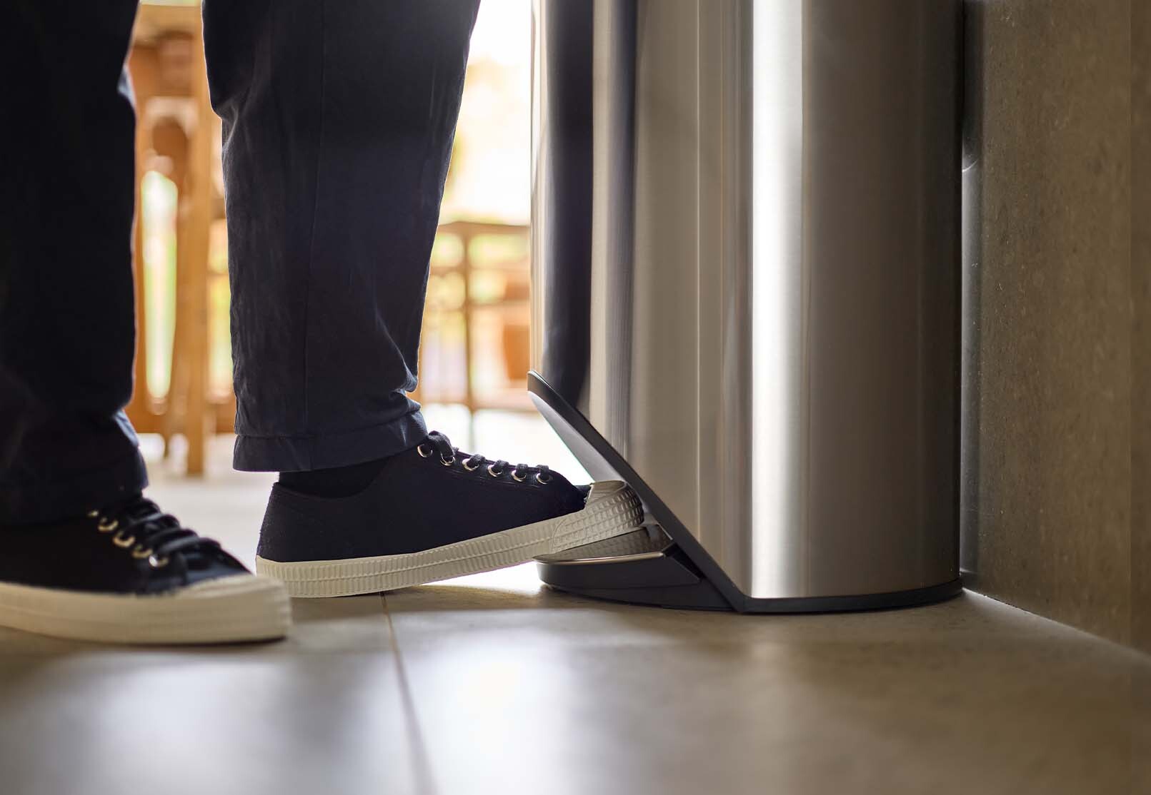 - Veľký pedál na jednoduché stláčanie, ktorý presne zapadá do tela koša a neprekrýva sa