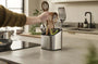 Do tohto stojana z nehrdzavejúcej ocele môžete uložiť kuchynské náčinie rôznych veľkostí. Jeho šikmý dizajn a oddelené priehradky uľahčujú organizáciu a prístup k jednotlivým pomôckam, pričompovrch odolný voči odtlačkom prstov a protišmyková základňa zabezpečia, že zostane čistý a stabilný na kuchynskej linke. Na jednoduché čistenie je stojan úplne rozoberateľný.