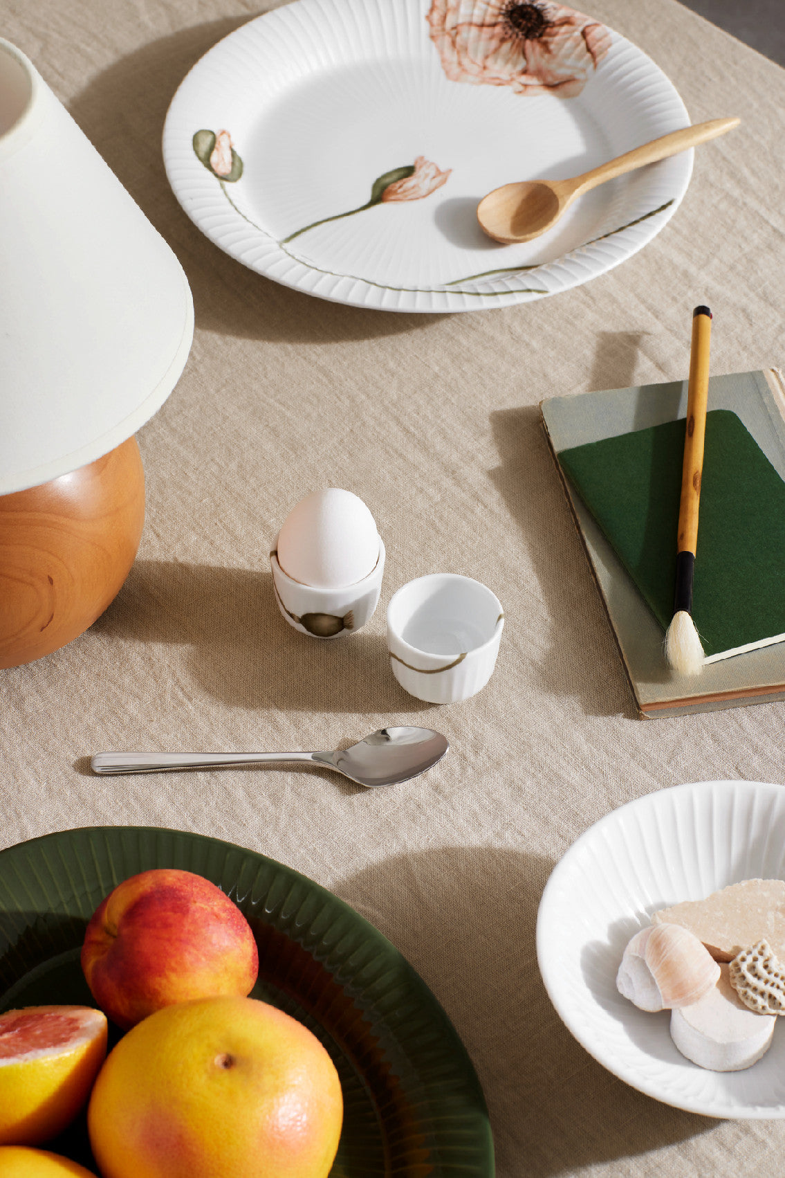 Hammerhøi Poppy je moderná kvetinová kolekcia zachytávajúca úchvatný pôvab maku. Dekorácie vytvorila umelkyňa Rikke Jacobsen, ktorá pracuje s krásou maku a aktívne využíva stonku, prvé púčiky aj kvet. Maky s úžasnými detailmi obopínajú bielu kolekciu riadu Hammershøi a vytvárajú nádherný kontrast k jednoduchému výrazu porcelánu. Malé stojany na vajíčka zdobí púčik, ktorý sa chystá rozkvitnúť - akoby sa pri raňajkách začínal nový deň.Doplňte stojany ďalšími kúskami z rovnakej kolekcie a vytvorte elegantné a súdržné raňajkové prestieranie.