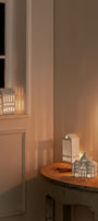 V keramických výrobkoch značky Kähler sa snúbia dejiny dizajnu s modernou dobou. Svietniky v tvare domčeka prinášajú do vašej domácnosti mestskú scenériu, kde teplé svetlo prúdi z mnohých ručne vyrezávaných okienok celého mestečka. Možností, ako domčeky naaranžovať, je nekonečne veľa a každý z nich predstavuje architektonickú cestu časom a priestorom.