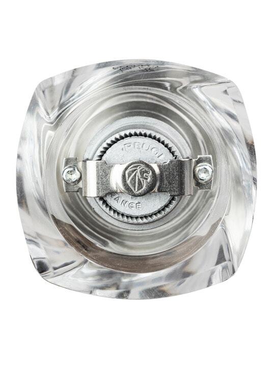 Mlynček na chilli Oléron 14 cm od francúzskeho výrobcu Peugeot. Dobre padnúci ručný mlynček vyniká jednoduchými líniami a jednoduchým používaním. Telo mlynčeka je vyrobené z priehľadného odolného akrylu, hlava mlynčeka je z bukového dreva v čokoládovej farbe. Mlecí mechanizmus je vyrobený z nehrdzavejúcej ocele špeciálne upravenej proti korózii. Patentovaný mlecí mechanizmus s čepeľami, ktoré sušené papriky vopred nakrájajú a následne melú. Mechanizmus je obojsmerný, takže nezáleží na tom, či hlavou mlynčeka otáčate v smere alebo proti smeru hodinových ručičiek. Nastaviteľná hrubosť mletia utiahnutím alebo uvoľnením korunky. Výborne sa kombinuje s mlynčekom na korenie alebo soľ z rovnakej kolekcie, s ktorými tvorí vynikajúcu dvojicu.