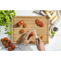 Odporúčame používať pružnú podložku na krájanie (dosku na krájanie) - drevenú, silikónovú alebo plastovú. Príliš tvrdé materiály, ako je sklo, žula alebo keramika, môžu za určitých okolností poškodiť ostrie a reznú hranu.