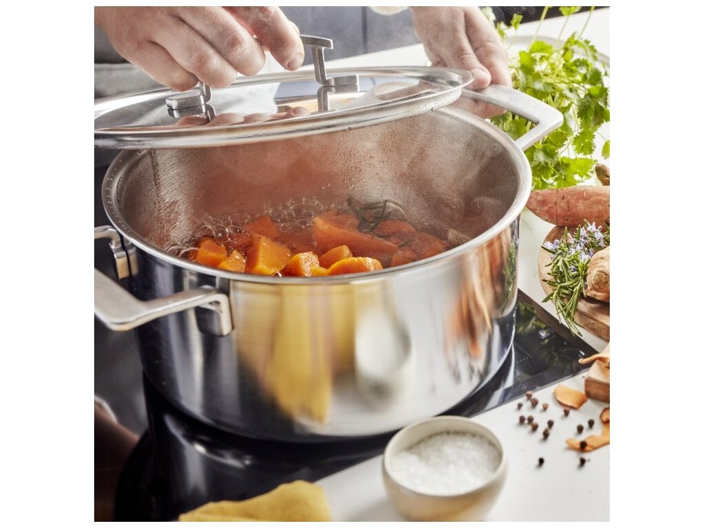 Hrnec je vhodný pro všechny druhy varných desek, včetně indukčních. Za zmínku stojí také speciální povrchová úprava pomocí Silvinoxu®. Díky tomu si nerezová ocel nejen déle zachovává svou původní barvu, ale také se snadno čistí, protože lze bez problémů odstranit i otisky prstů a jiné nečistoty. Kuchyňské nádobí Demeyere Industry 5 vám zaručí celoživotní potěšení a spokojenost.