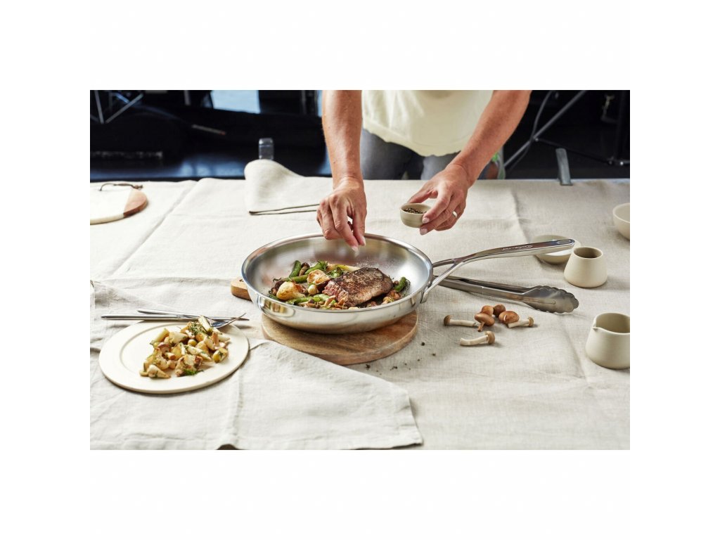 Pánev je vhodná pro všechny typy sporáků a je speciálně navržena pro použití na indukčních varných deskách. Díky technologii TriplInduc® na indukci vaříte až o 30% rychleji, efektivněji a s větší kontrolou. Za zmínku stojí také speciální povrchová úprava pomocí Silvinoxu®. Díky tomu si nerezová ocel nejen déle zachovává svou původní barvu, ale také se snadno čistí, protože lze bez problémů odstranit i otisky prstů a jiné nečistoty.