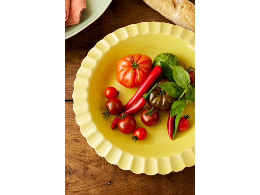 Servírovací talíř z kolekce Big Love od Jamieho Olivera je skutečně úžasným kouskem, který povýší každé jídlo na skutečnou událost. Je vyroben z odolné kameniny s na dotek příjemným rustikálním zvlněným okrajem. Lze jej používat jak k přípravě, tak k servírování pokrmů, ať už se jedná o křehké saláty nebo nádherné dezerty. Lze používat v mikrovlnné i klasické troubě, takže je ideální pro pokrmy, které se musí péct. Talíř pak stačí vložit do myčky nádobí, abyste se mohli opravdu bezstarostně bavit. Doplňte jej o další nádobí z kolekce Big Love a zpříjemněte si každé stolování.