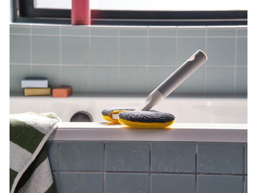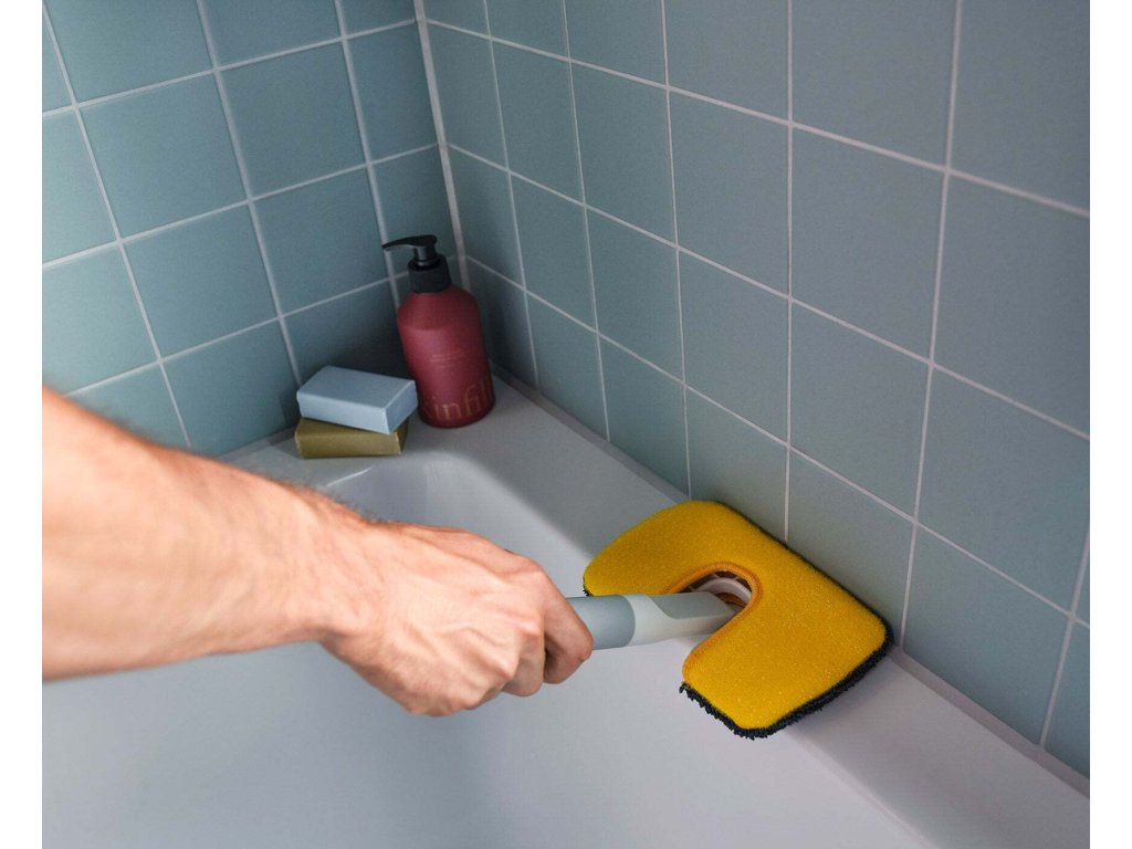 Tento oboustranný nástroj na čištění povrchů je vybaven z jedné strany podložkou z mikrovlákna a z druhé strany abrazivním polštářkem, díky kterým zvládne vyčistit vše od choulostivých povrchů až po odolné nečistoty. Kompatibilní s teleskopickou tyčí Joseph Joseph CleanTech pro snadné dosažení vyšších míst.
