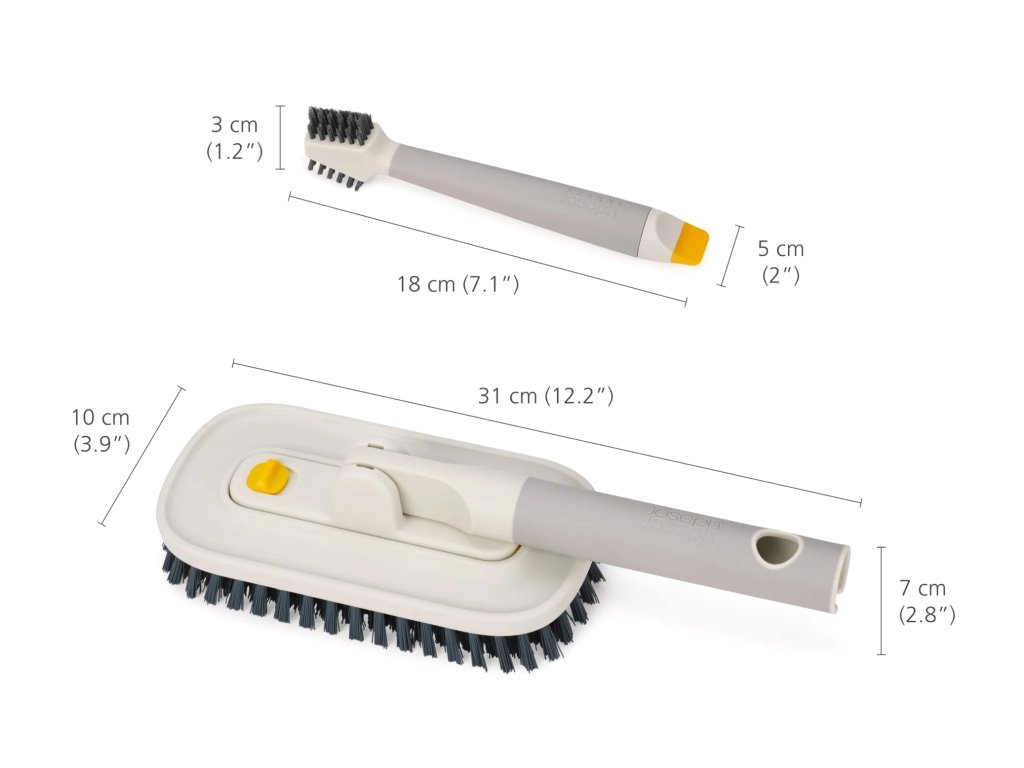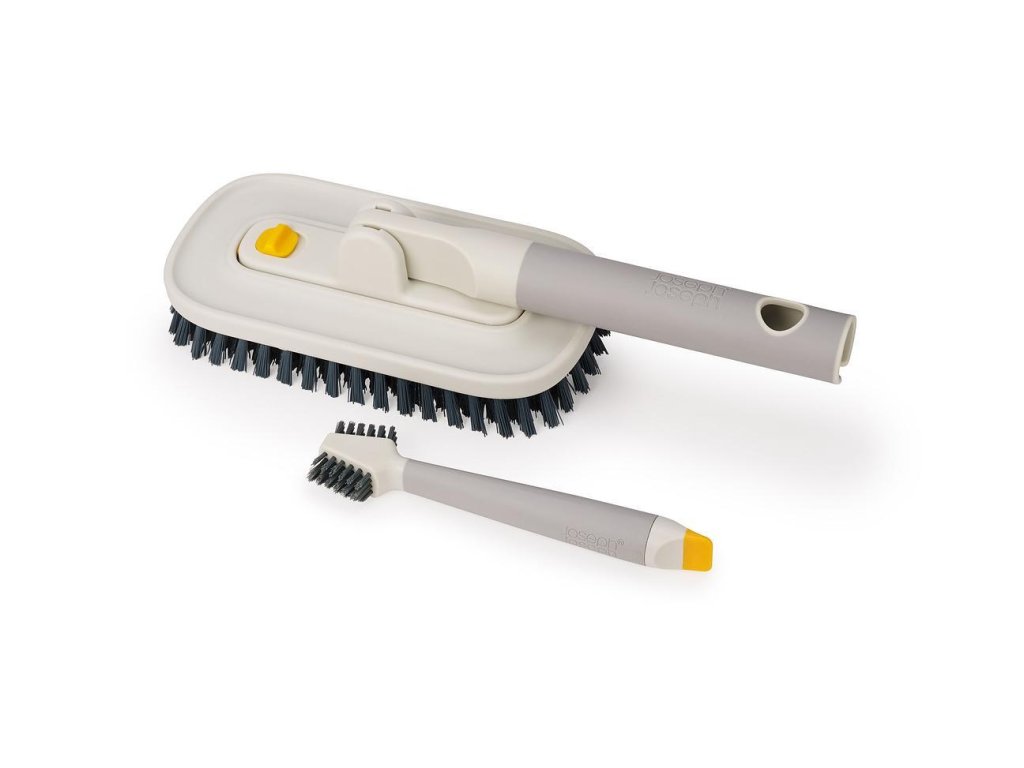 Tato sada obsahuje kartáč na dlaždice a velké plochy 2v1 a čisticí kartáček 3v1, který je ideální čištění menších ploch, spár nebo na odstraňování vodního kamene. Kartáč na dlaždice je kompatibilní s teleskopickou tyčí Joseph Joseph CleanTech pro snadné dosažení vyšších míst.