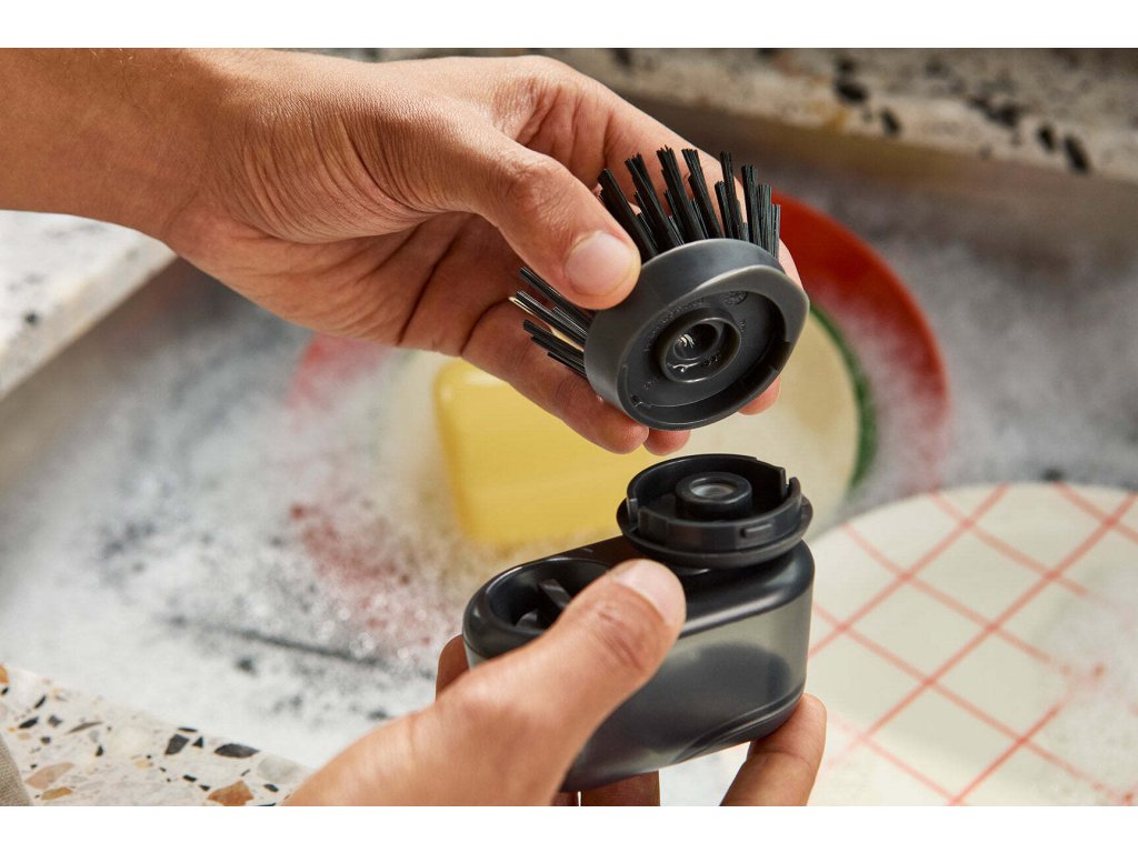 Tyto kartáčové hlavice s odolnými štětinami pro efektivní čištění nádobí se snadno nasazují a jsou kompatibilní se všemi kartáči Joseph Joseph SinkTech.