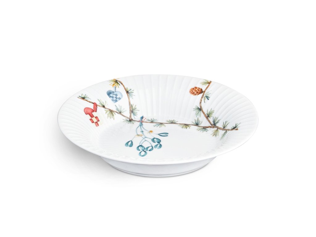 Tento nádherný hluboký talíř z vánoční kolekce jídelního nádobí Hammershøi Christmas zdobí okouzlující klasické motivy větvičky jmelí a dánského vánočního srdce. Nádherné dekorace na elegantním bílém porcelánu vytvářejí moderní, ale zároveň tradiční vánoční styl. Vychutnejte si po celý prosinec tu pravou vánoční snídani, podávejte horkou polévku nebo připravte výjimečný vánoční dezert.