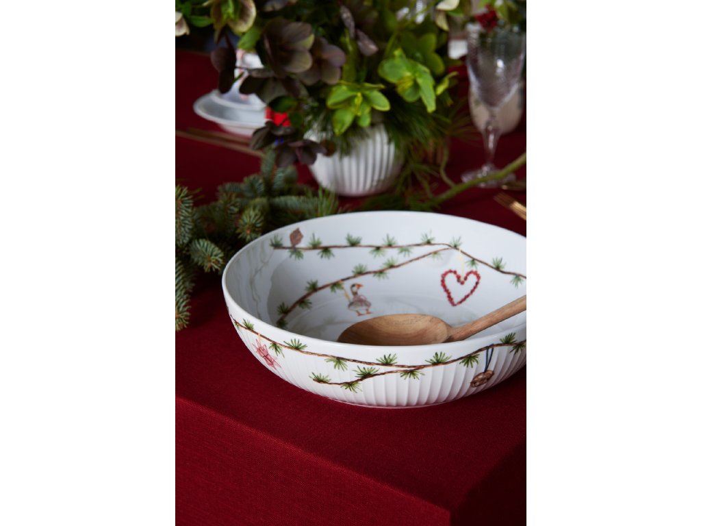 Hammershøi Christmas vítá Vánoce sérií nových ilustrací na oblíbeném vánočním nádobí. Jemné, detailní vánoční motivy jsou dílem umělkyně Rikke Jacobsen, která ve svém charakteristickém stylu vypráví malé příběhy, v nichž vystupují například cukrové kornouty, andělé, vlašské ořechy, ptáci, šišky a hvězdy. Umístěte krásnou mísu Hammershøi Christmas na váš vánoční stůl spolu s dalšími kousky z řady Hammershøi Christmas nebo v kombinaci s klasickým bílým nádobím Hammershøi. Na nové ilustrace Rikke Jacobsen se můžete také těšit u jídelního nádobí, vázách, omáčnících, hrnkách a vánočních ozdobách z kolekce Hammershøi Christmas.