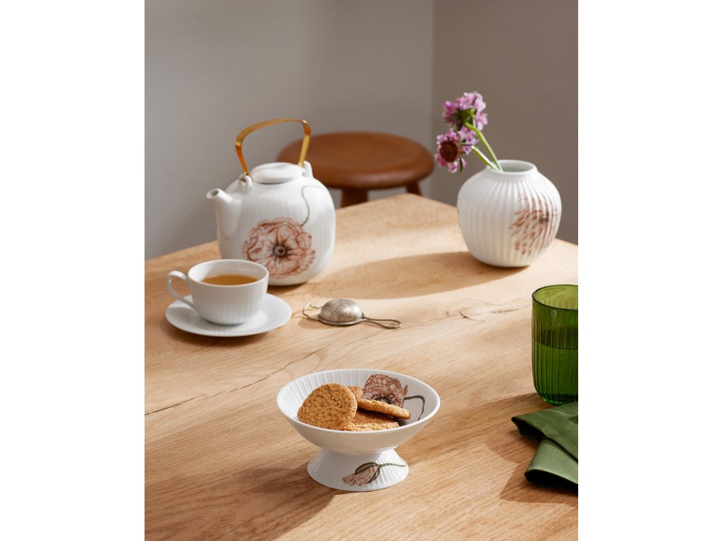 Šálek s podšálkem Hammershøi Poppy od dánské značky Kähler s klasickým vroubkovaným vzorem je ozdoben krásným akvarelovým dekorem máku od uznávané umělkyně Rikke Jacobsen....