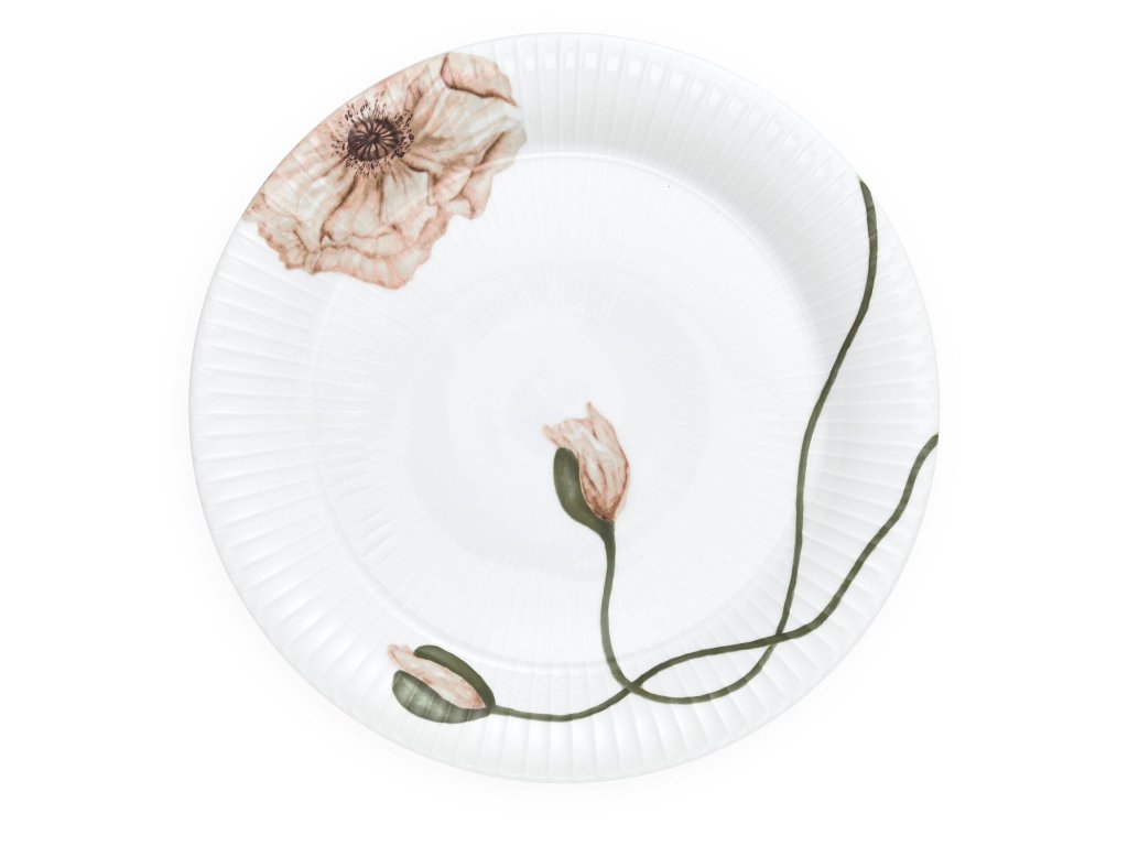 Motivy kolekce Hammershøi Poppy vytvořila umělkyně Rikke Jacobsen, která pracovala s krásou máku a aktivně využila vše od stonku, přes první poupata až po plně rozkvetlý květ. S fantastickými detaily se máky ovíjejí kolem bílého servírovacího nádobí Hammershøi a vytvářejí krásný kontrast k jednoduchému designu porcelánu. Hammershøi Poppy však nevyzařuje jen krásu, ale také kvalitu a řemeslné zpracování. 'Plátnem' pro světle růžové máky je klasický porcelán Hammershøi navržený Hansem-Christianem Bauerem - tato kombinace vám tak dává nepřeberné možnosti. Můžete si zkusit pohrát se způsobem umístění talířů, misek a šálků - podle toho, jak je budete otáčet, můžete vytvořit velmi odlišné vzhledy a styly. Jídelní stůl můžete proměnit v půvabné květinové pole, nebo můžete kolekci Poppy zkombinovat s klasickým bílým servisem Hammershøi pro dosažení decentnějšího vzhledu.
