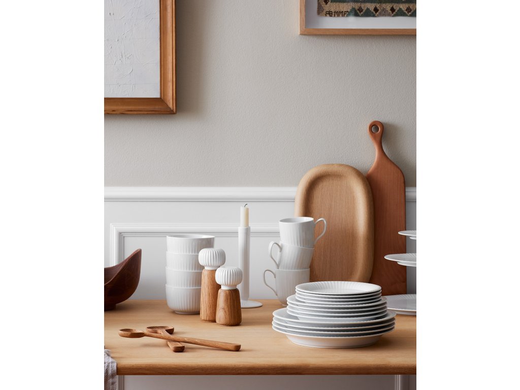 Stylová a elegantní kolekce Hammershøi od dánské značky Kähler je inspirována jedním z nejtalentovanějších a nejslavnějších designérů v historii této značky: Svendem Hammershøiem. Do společnosti Kähler nastoupil v roce 1893 a proslavil se svými návrhy s výraznými konturami a rýhováním. Tyto rýhy se staly inspirací pro designéra Hanse-Christiana Bauera, když v roce 2015 vytvořil sérii Hammershøi jako poctu velkému mistrovi značky Kähler. Kolekce Hammershøi získala status ikony a dnes je moderní klasikou, která oslovuje široké spektrum lidí se zájmem o design. Čisté, minimalistické linie a příjemné oblé tvary dodávají této kolekci nadčasovou eleganci v souladu s tradicí skandinávského designu a designovými vizemi Svenda Hammershøiho. Kolekce zahrnuje talíře všech velikostí, hrnky, džbány, misky, vázy a mnoho dalšího. Společným znakem všech výrobků z kolekce Hammershøi je, že jsou vytvářeny ručně a vyznačují se autenticitou a kvalitou, která charakterizuje rozmanité kulturní dědictví a dlouholetou tradici ruční výroby společnosti Kähler.