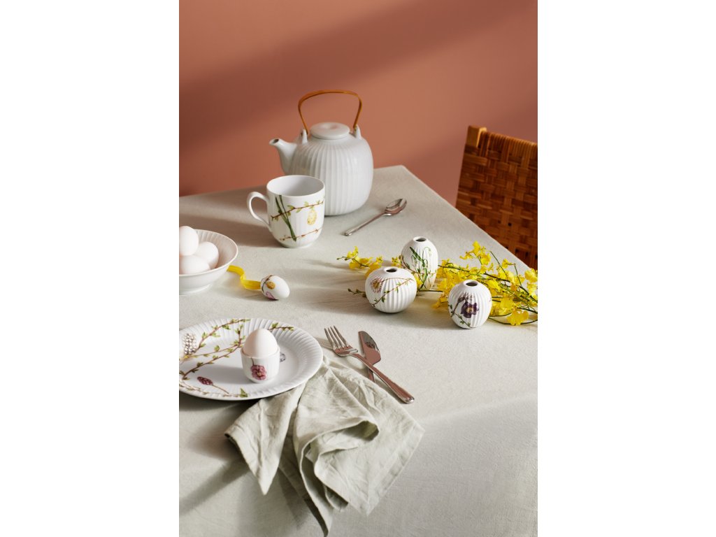 Hammershøi Spring je jednoduchá a stylová jarní kolekce značky Kähler, ve které se klasické vroubkování Hammershøi setkává s motivy umělkyně Rikke Jacobsen. Velikonoce jsou významným svátkem jara a prostřednictvím kolekce Hammershøi Spring jim Kähler věnuje pozornost, jakou si zaslouží. Klasické, vroubkované nádobí Hammershøi je ozdobeno jemnými motivy, jako jsou narcisy, vajíčka, zajíčci či větvička s křehkými svěžími lístky, které dávají jasně najevo, že jaro je na cestě.