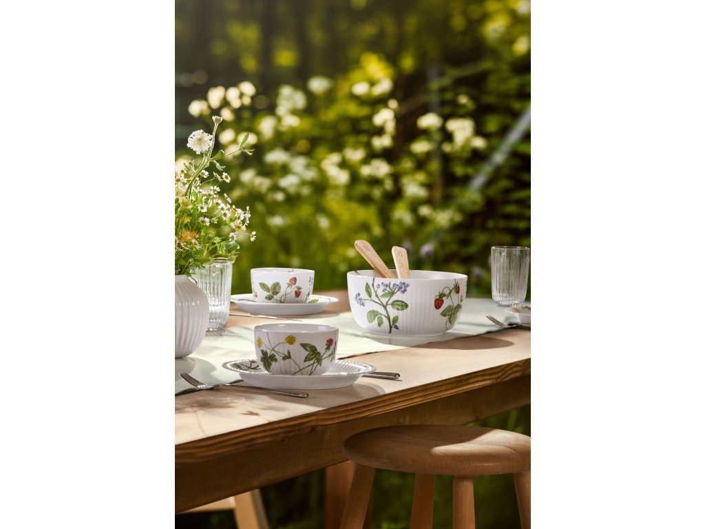 Misku si lze snadno představit jako dokonalý způsob, jak připravit a servírovat křupavý zahradní salát, a díky své velikosti a samozřejmě i motivu je ideální pro servírování několika hrstek čerstvě natrhaných jahod z vlastní zahrady nebo z nedalekého farmářského obchodu. Autorkou akvarelových ilustrací je známá umělkyně Rikke Jacobsen.
