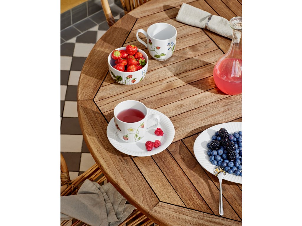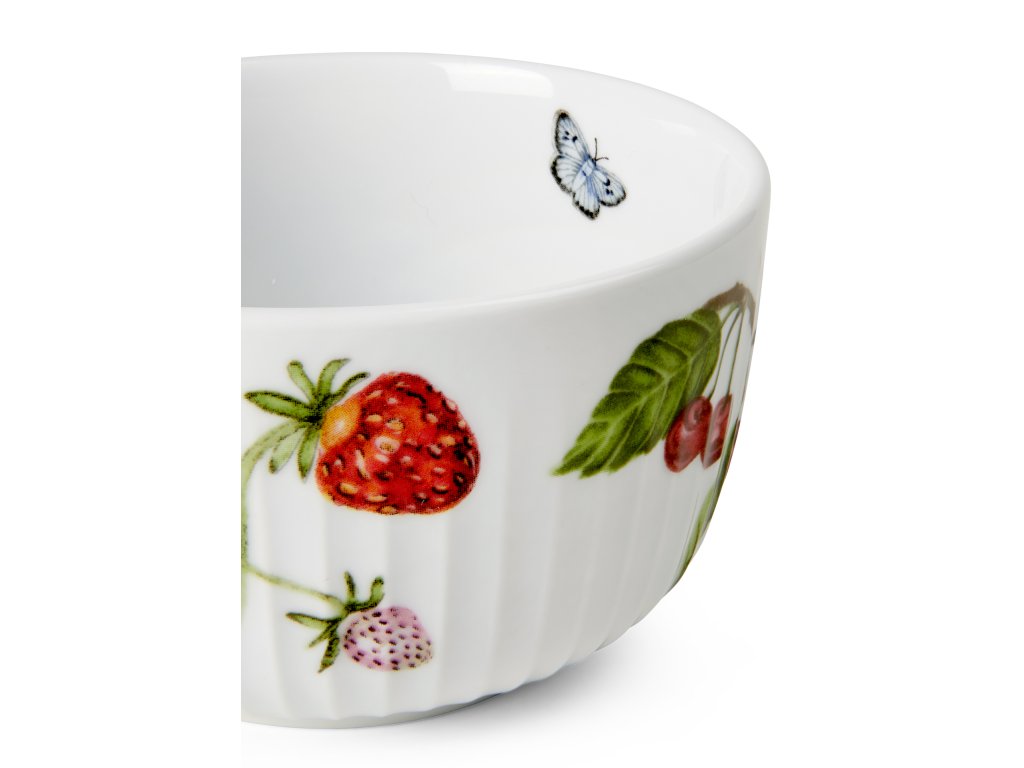 Porcelánovou misku o průměru 12 cm zdobí dozrávající jahody, větvičky borůvek a hravý poetický motýl. Autorkou akvarelových ilustrací je umělkyně Rikke Jacobsen, která se při tvorbě inspirovala kouzelnými tvary, barvami a atmosférou dánského léta.