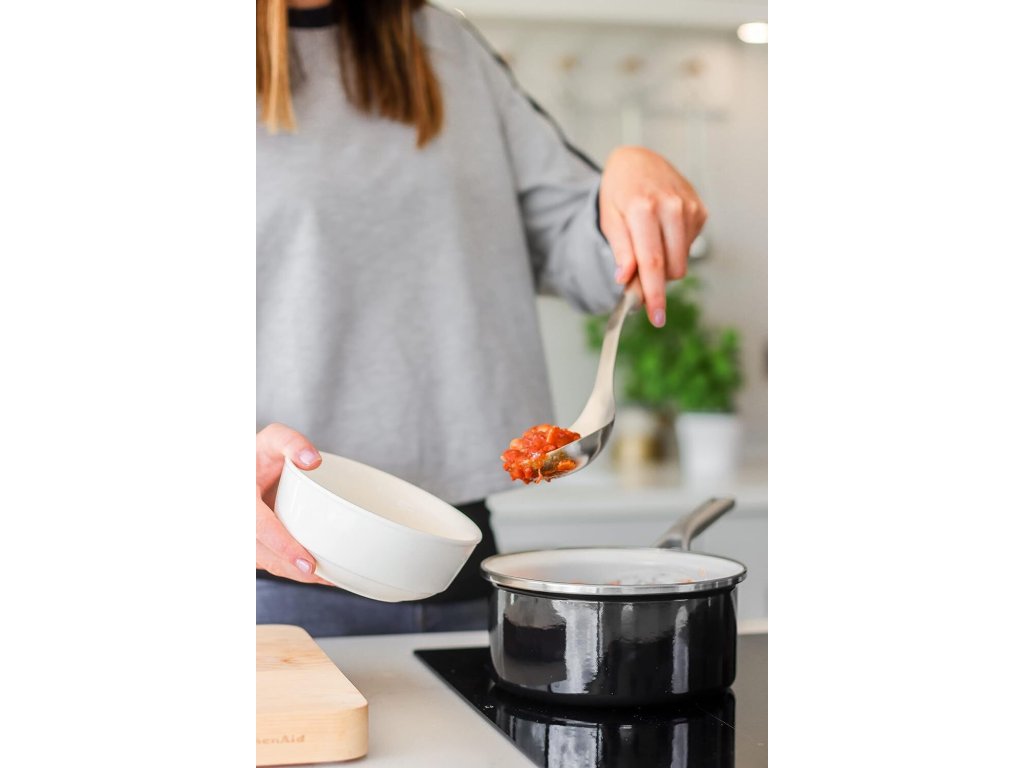 Lžíce na vaření KitchenAid Premium je ideálním pomocníkem při míchání polévek a dušených pokrmů. Její moderní avšak elegantní provedení z matné nerezové oceli ozdobí vaši kuchyni.