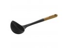 Kuchyňské náčiní tvarem ideálně přizpůsobené pro přípravu jídel v pánvích wok, z černého matného silikonu o šířce o maličko větší než 9 cm. Rukojeť z exotického dřeva akácie....