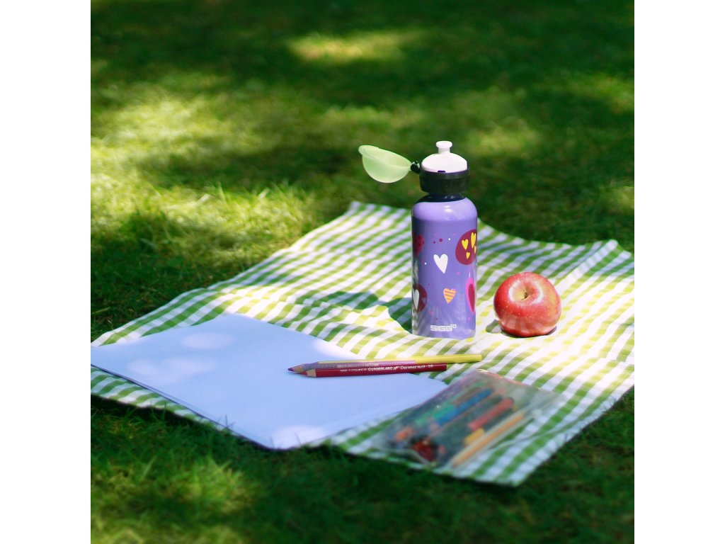 S balónky a srdíčky kolem světa! S fialovou láhví na pití Glow Heartballons od společnosti Sigg jsou holčičky vždy připravené na velká dobrodružství. Láhve Sigg jsou vyráběny z jediného kusu hliníku, což jim dodává dokonalou těsnost, pevnost, trvanlivost a to při nízké hmotnosti. Vnitřní povrch je upraven speciální patentovanou technologií EcoCare, která je zdravotně a hygienicky nezávadná, neobsahuje žádné škodlivé chemikálie (BPA), neabsorbuje žádné pachy ani chutě a při promáčknutí lahve se flexibilně přizpůsobí novému tvaru, neoloupe se.