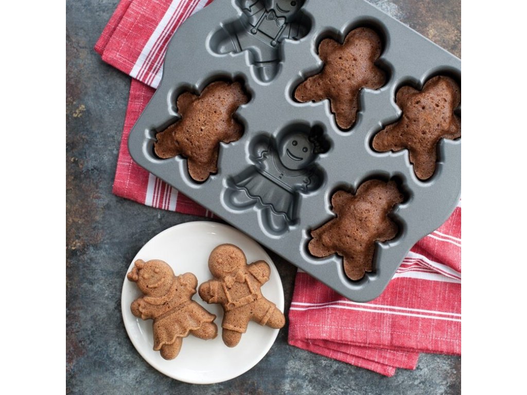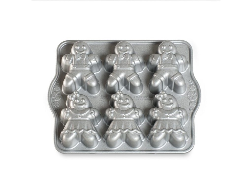 Nordic Ware minibábovkový plát s 6 formičkami Gingerbread Kids, stříbrná 4,5 cup, 86948