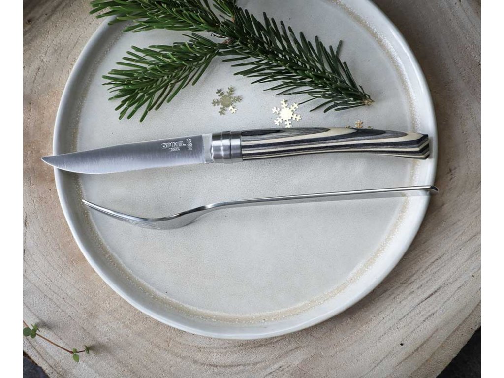 V roce 2021 švýcarské designové studio BIG GAME vytvořilo pro značku Opinel kolekci nerezových příborů Perpétue, dokonale spojující dávnou rodinou tradici a současný design. Kolekce nese jméno babičky Josepha Opinela, právě toho, díky kterému Francie získala jednu ze svých ikon, která nakonec dobyla celý svět – zavírací kapesní nůž Opinel. Stejné studio pak navrhlo i sady steakových nožů Table Chic, kde dřevěné rukojeti jsou vždy ze dřeva s nádhernou kresbou či barvou. Koupit si tak můžete sady 4 stolních, velmi ostrých nožů s rukojeťmi z olivového, ebenového nebo jasanového dřeva či speciálním procesem upravené finské břízy.