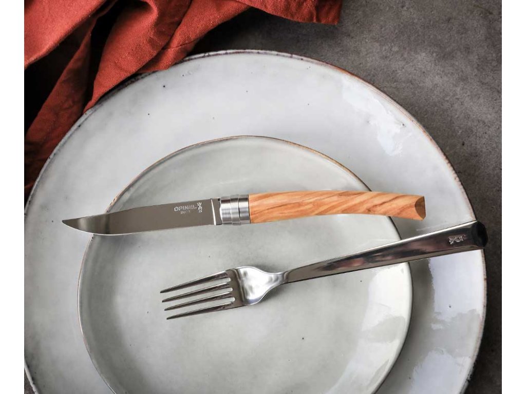 V roce 2021 švýcarské designové studio BIG GAME vytvořilo pro značku Opinel kolekci nerezových příborů Perpétue, dokonale spojující dávnou rodinou tradici a současný design. Kolekce nese jméno babičky Josepha Opinela, právě toho, díky kterému Francie získala jednu ze svých ikon, která nakonec dobyla celý svět – zavírací kapesní nůž Opinel. Stejné studio pak navrhlo i sady steakových nožů Table Chic, kde dřevěné rukojeti jsou vždy ze dřeva s nádhernou kresbou či barvou. Koupit si tak můžete sady 4 stolních, velmi ostrých nožů s rukojeťmi z olivového, ebenového nebo jasanového dřeva či speciálním procesem upravené finské břízy.