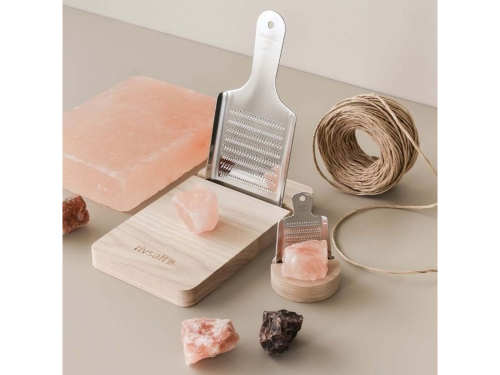 Rivsalt Kitchen dárková sada velkého struhadla s prkénkem, krystal soli Hymalaian