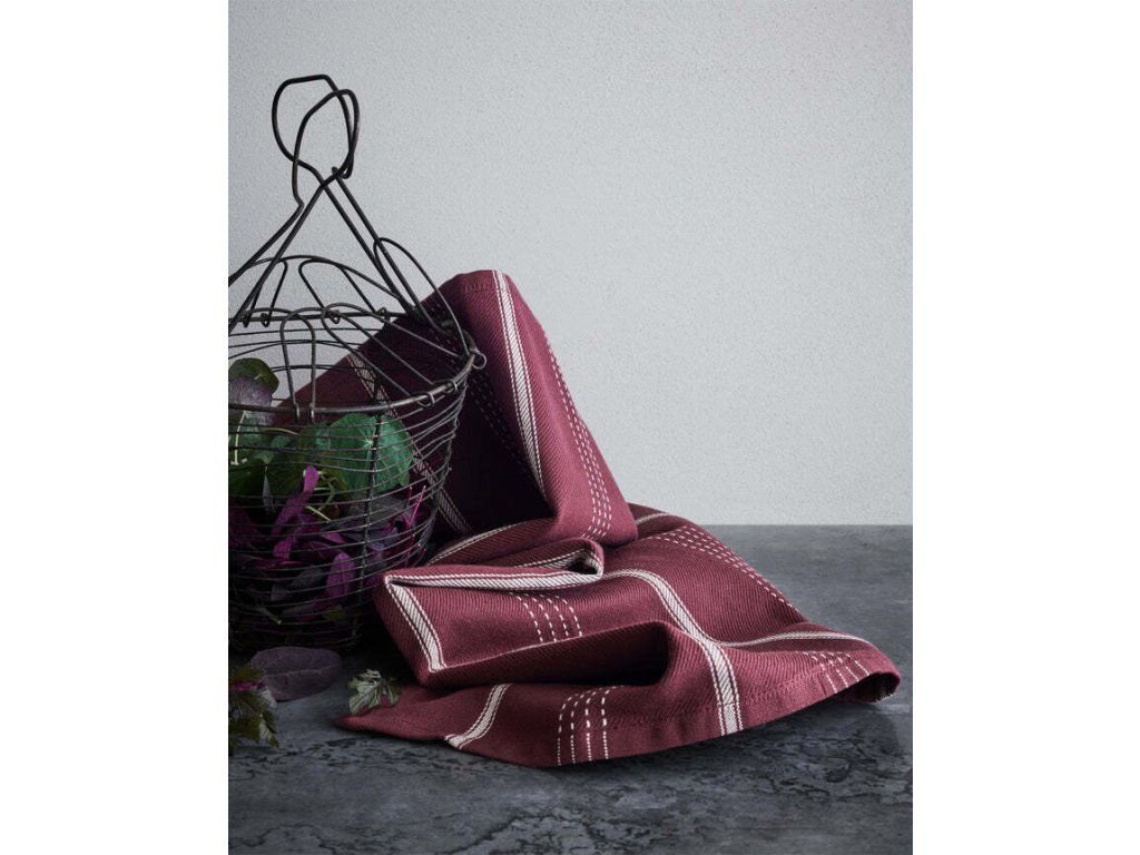 Zpestřete si chvíle v kuchyni s barevnými textiliemi od dánské značky Rosendahl. Jsou vyrobeny zodpovědně a zároveň nabízejí stylový a nadčasový design. Kuchyňská utěrka Rosendahl Beta o rozměrech 50x70 cm je zhotovena ve vínové barvě a díky klasickému a elegantnímu tkanému pruhovanému motivu v kontrastní bílé barvě okamžitě oživí každou kuchyň.