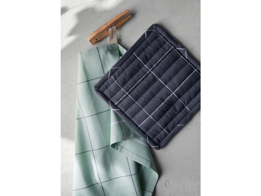 Zpestřete si chvíle v kuchyni s barevnými textiliemi od dánské značky Rosendahl. Jsou vyrobeny zodpovědně a zároveň nabízejí stylový a nadčasový design. Kuchyňská utěrka Rosendahl Gamma o rozměrech 50x70 cm je zhotovena v jemné mátové barvě s kontrastními barvami tmavě šedé a bílé. Díky elegantnímu a modernímu tkanému kostkovanému vzoru okamžitě oživí každou kuchyň. Kuchyňský textil Rosendahl je nejen krásný na pohled, ale také funkční, dobře absorbuje a rychle schne.