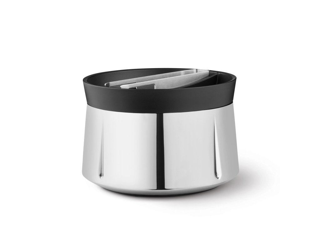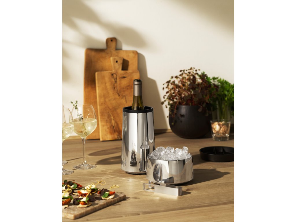 Krásně propracovaná nádoba na led Grand Cru od Rosendahl ze zrcadlově leštěné nerezové oceli a ABS. Nádoba měří 11 cm na výšku a má průměr 16 cm. Elegantní a stylová nádoba je vybavena víkem se třemi přihrádkami, do kterých můžete uložit doplňky k nápojům, jako je citron a máta. Ve víku je také speciální místo pro kleště na led, aby byly vždy po ruce. Nádoba je vhodná pro každodenní použití i pro večírky.