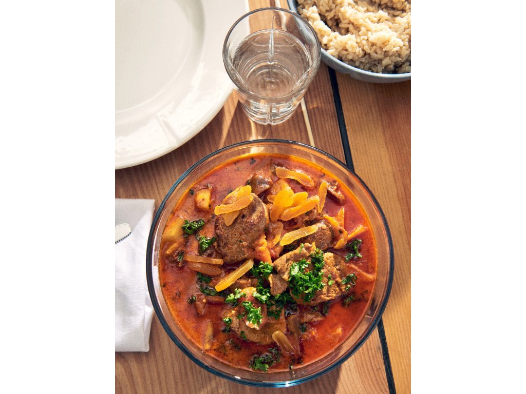 Kulatý litinový pekáč Staub vhodný pro přípravu a servírování zapékaných pokrmů.