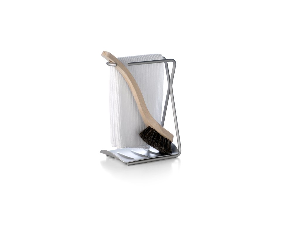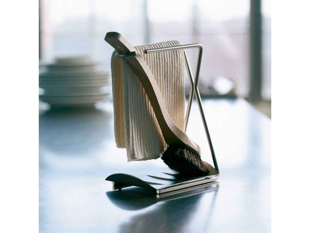 Nevíte, co s utěrkou, kartáčem na mytí nádobí nebo mýdlem u kuchyňského dřezu? Tento stojan vám umožní mít veškeré pomůcky na dosah ruky a zabrání odkapávání na kuchyňskou linku.