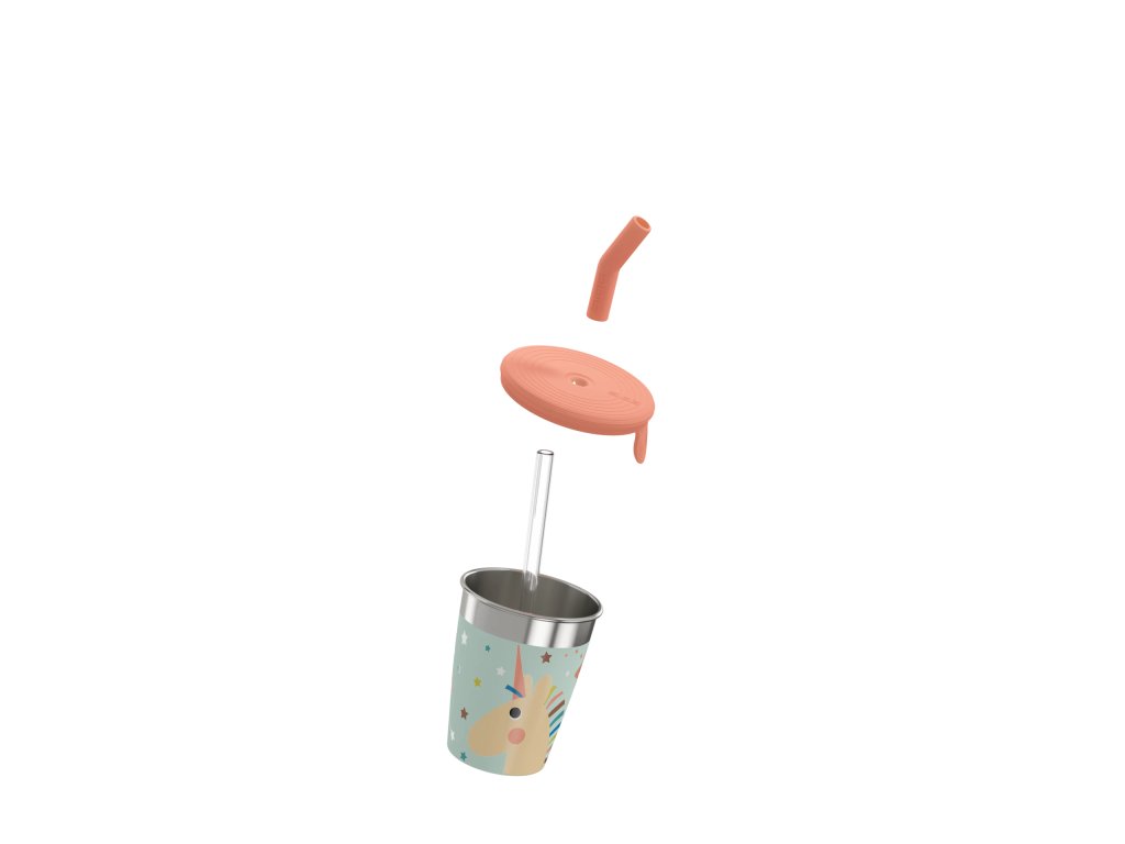 Barevný dětský kelímek s brčkem a odnímatelným silikonovým víčkem je ideální volbou pro malé dobrodruhy, kteří rádi podnikají různé aktivity. Stačí jej naplnit vodou, sirupem nebo jinými studenými nápoji, nasadit víčko s brčkem a můžete vyrazit! Měkký silikonový náustek se zaoblenými hranami zajišťuje příjemný zážitek z pití a motivuje děti k tomu, aby pily více. Převrhl se dětem kelímek při hraní? Žádný problém - víčko zabraňuje vylití nápoje. Odolné kelímky vyrobené z 90% recyklované nerezové oceli jsou udržitelnou a odolnou alternativou k jednorázovým plastovým kelímkům a lahvím. Neobsahují BPA a zachovávají přirozenou chuť nápojů. Díky odnímatelnému víčku se kelímky snadno čistí v myčce nádobí nebo kartáčem a houbičkou. Další plus: kelímky jsou stohovatelné, a proto šetří místo v kuchyňské skříňce. Víčko je také kompatibilní se všemi kelímky pro děti značky Sigg.
