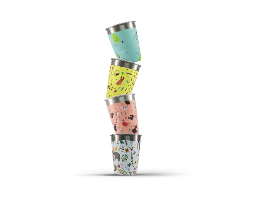 Seznamte se s těmi nejúžasnějšími kelímky pro dívky a chlapce! Nové dětské kelímky v barevném a vzorovaném provedení, vyrobené z nerezové oceli 18/8, jsou vším, co potřebujete, aby vaše děti dodržovaly správný pitný režim. Dětské pohárky neobsahují BPA, plasty a jsou recyklovatelné - představují dokonalou alternativu k jednorázovým kelímkům a lahvím. Snadno se čistí, lze je mýt v myčce nádobí a pohodlně se skladují jeden na druhém, což znamená více místa na kuchyňských poličkách nebo v batohu! Velikost kelímku byla speciálně navržena tak, aby padl do dětských rukou. Ať už doma nebo venku, na zahradě nebo na pikniku u jezera, tyto kelímky na pití budou vaše děti provázet po mnoho let a navíc - zachovávají přirozenou chuť a vůni každého nápoje.