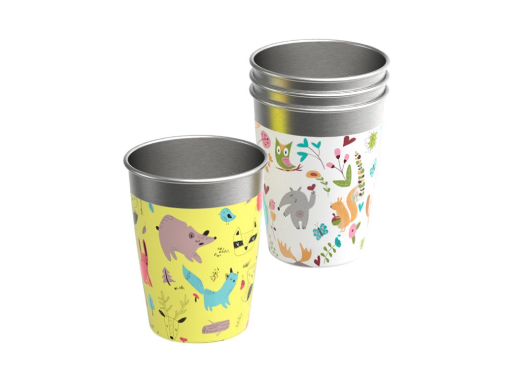Tyto dětské kelímky byly vyrobeny z kvalitní nerezové oceli 18/8, z 90% recyklované a jsou tak skvělou ekologickou alternativou k jednorázovým plastovým kelímkům a lahvím.