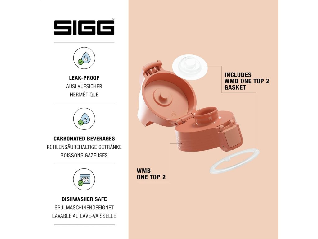 Inovativní a funkční uzávěr ONE top 2 umožňuje snadné přenášení, otevírání, pití, zavírání a zajištění lahví Sigg WMB One pouze jednou rukou. Díky hygienickému a praktickému uzávěru budou vaše lahve zaručeně nepropustné, a to i v případě sycených nápojů a při držení dnem vzhůru.