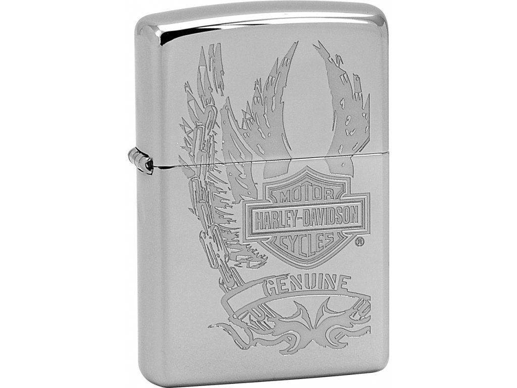 22996 Harley-DavidsonZapalovač Zippo 22996 Harley-Davidson s povrchem z leštěného chromu.