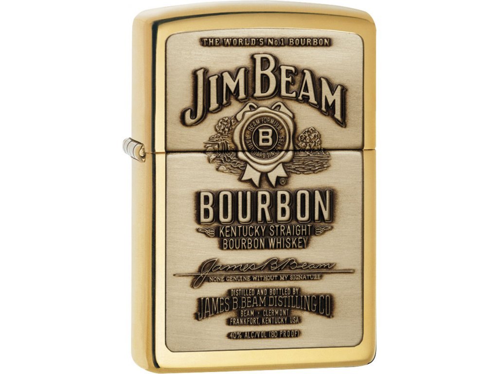 23156 Jim Beam Brass EmblemZapalovač Zippo 23156 Jim Beam Brass Emblem s povrchem z broušené mosazi.