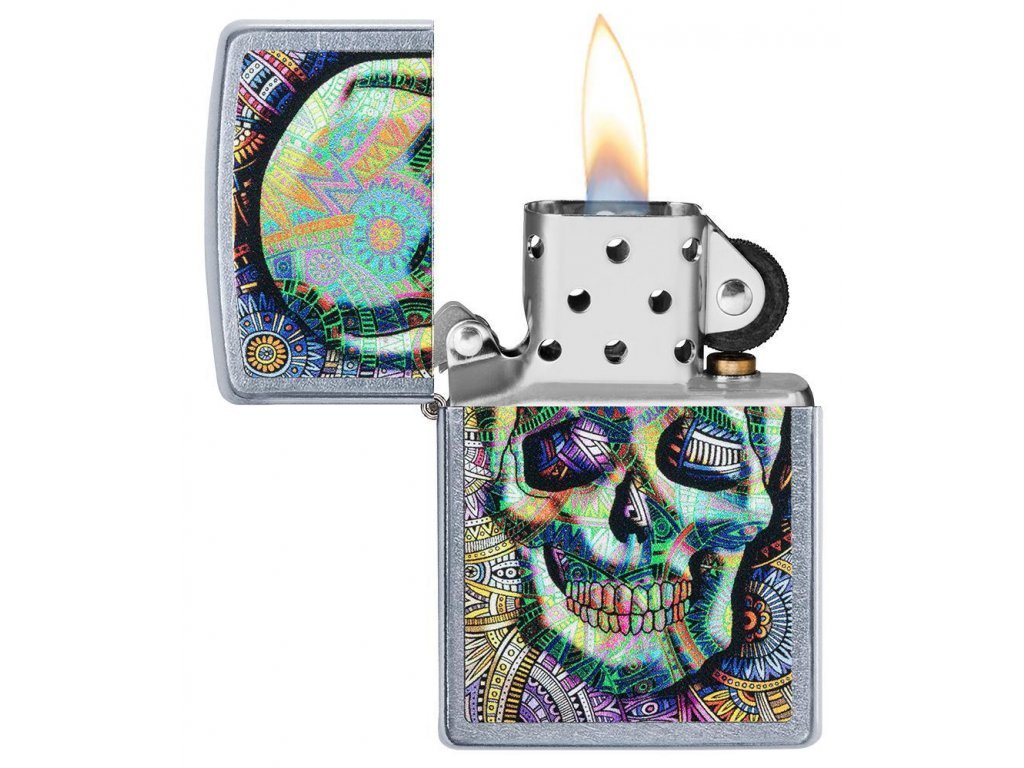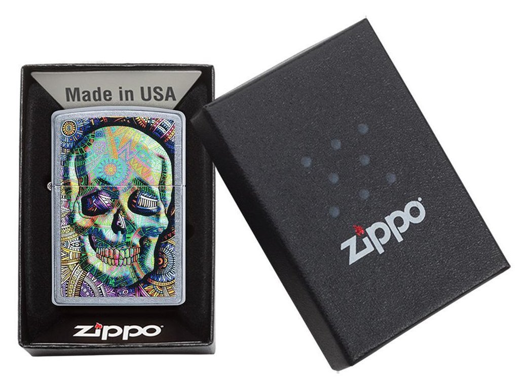 25565 Geometric SkullZapalovač Zippo 25565 Geometric Skull s povrchem Street Chrome.