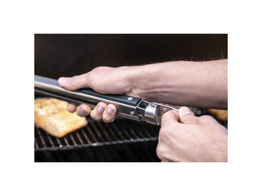 Ať už se jedná o hamburgery, steaky nebo křehké grilované pokrmy, jako je losos nebo zelenina: s kleštěmi Zwilling BBQ+ můžete své lahodné grilované pokrmy otáčet a servírovat jako pravý grilovací šéfkuchař! Grilovací kleště z nerezové oceli vám to díky své vroubkované části usnadní: maso a zeleninu můžete bezpečně a bez sklouznutí uchopit a stylově je přenést ke svým hostům. Bezpečnější však není jen přeprava, ale i grilování: nyní máte ke grilu větší odstup, protože grilovací náčiní má extra dlouhou rukojeť. A abyste měli dlouhé grilovací kleště vždy po ruce, můžete je jednoduše zavěsit přímo na gril pomocí jejich nerezového očka. Integrovaný zajišťovací mechanismus grilovacích kleští zabraňuje jejich náhodnému otevření. A protože grilování je zábava, ale mytí už méně, můžete grilovací kleště z nerezové oceli jednoduše vložit do myčky nádobí a bez námahy umýt.