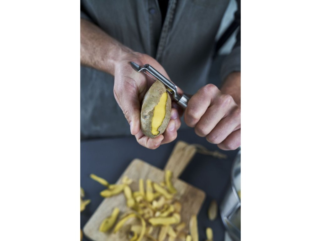 Škrabka Duo pro rychlé a efektivní oloupání slupek zeleniny nebo ovoce. Čepel z nerezové oceli a ergonomická rukojeť příjemná na dotek.