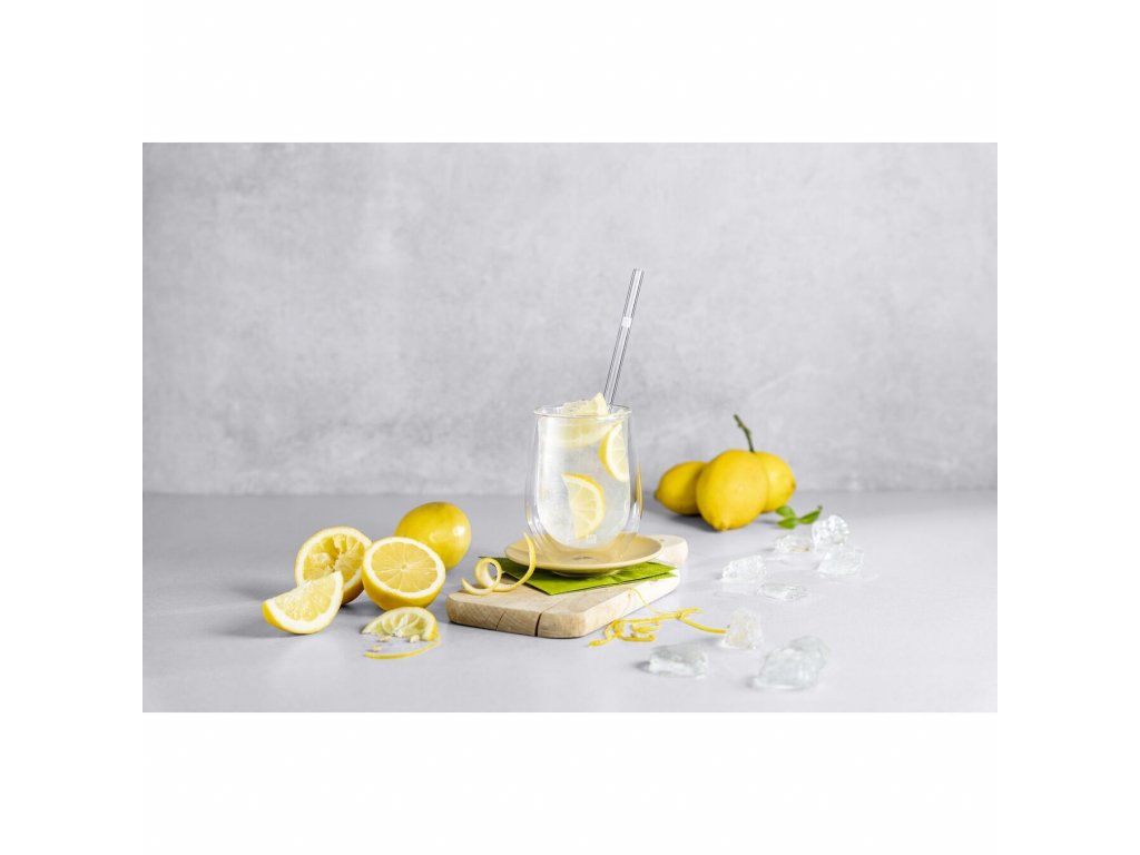 Je to tak, plastovým brčkům odzvonilo, novým trendem jsou opakovaně použitelná brčka, třeba ta skleněná z kolekce Zwilling Sorrento. Nemění chuť nápojů, nezanechávají v ústech kovovou pachuť, nebarví se, ani se teplem nedeformují. Rovná brčka z borosilikátového skla budou nejen skvělým pomocníkem, ale i pěknou ozdobou každého drinku. Můžete je používat nejen na studené nápoje, jakou jsou koktejly, džusy, šťávy a smoothie, ale i na teplé nápoje – latte machciato nebo chai latte.
